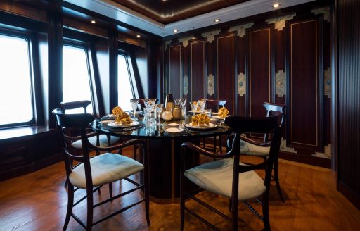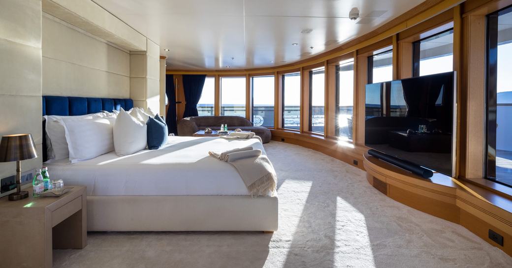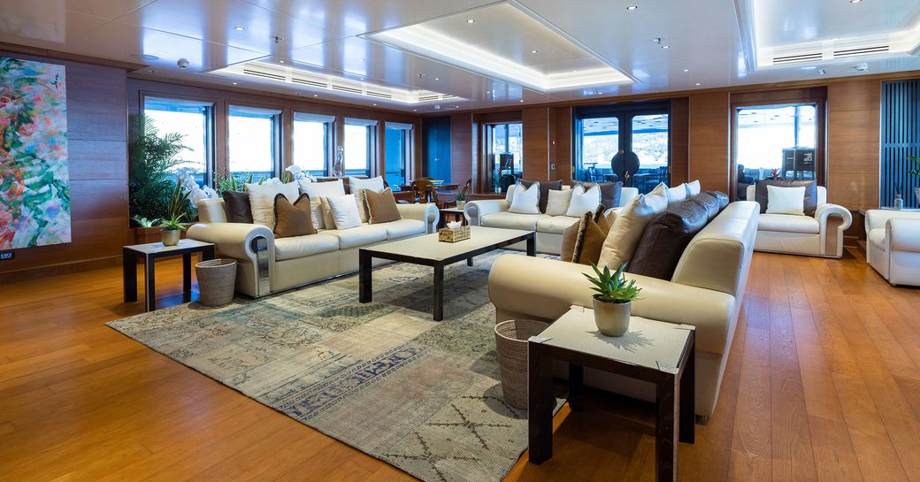ويضم الطابق العلوي صالونًا فاخرًا آخر بأثاث روش بوبوا المصمم خصيصًا، وشاشة عرض، مثالية للاسترخاء أو العروض الخاصة.  وكل تفصيلة، من فخامة الفرش إلى التكامل الدقيق للتقنيات، يعكس تجربة مثالية على متن السفينة التي تجمع بين الفخامة والراحة التامة.