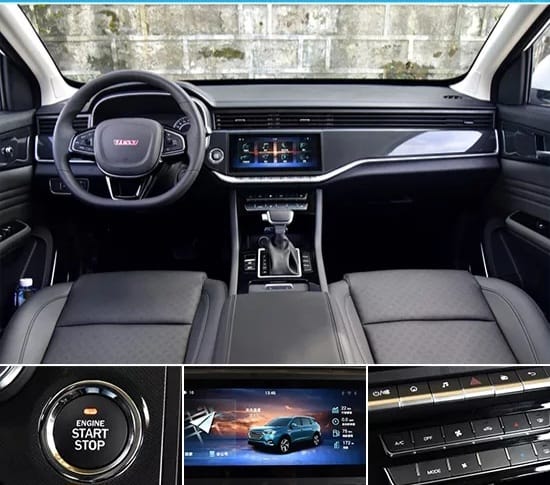 أما في الداخل, فيتاح للسيارة عجلة قيادة مكسوة بالجلد ومقاعد جلد مريحة ومسند رأس أمامي وخلفي قابل للتعديل وكونسول وسطي جلدي وتعديل كرسي السائق كهربائياً في 6 اتجاهات وكرسي الراكب الأمامي يدوياً في 4 اتجاهات مع أماكن تثبيت مقاعد الأطفال في الخلف وفرش داخلي أسود ومسند ذراع للمقاعد الخلفية مركزي مع حامل أكواب . كما تزود بفتحة سقف بانوراما مع خاصية عدم الاغلاق لوجود عائق وفتح النوافذ مغ غلق نافذة السائق فقط من الريموت وفتحة واغلاق السقف البانوراما من الريموت وضغطة واحدة للتحكم في النوافذ الأربعة مع تكييف هواء أوتوماتيك وفتحات تكييف خلفية.