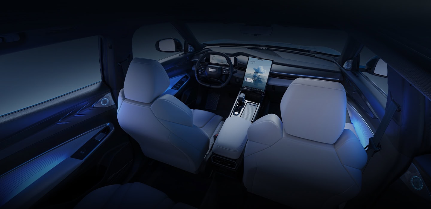 وفي مقصورة السيارة, يتاح اضاءة محيطية من 72 لون ومقاعد من القماش والجلد الصناعي أو جلد خاص وتعديل مقعد السائق يدوي في 8 اتجاهات والراكب 4 اتجاهات وتبريد في المقاعد الأمامية وذاكرة لكرسي السائق ومقاعد خلفية قابلة للطي بنسبة 60:40 مع مسند ذراع خلفي وحامل أكواب وتثبيت مقاعد الأطفال في الخلف. كما يتوفر بالمقصورة شاشة عدادات رقمية 10.2بوصة وشاشة رئيسية 10.2 بوصة و4 الي 8 سماعات حسب الفئة وفتحات مختلفة للشحن ومنافذ طاقة 12 فولت وبلوتووث وأبل كار بلاي وأندرويد أوتو وشحن لاسلكي.