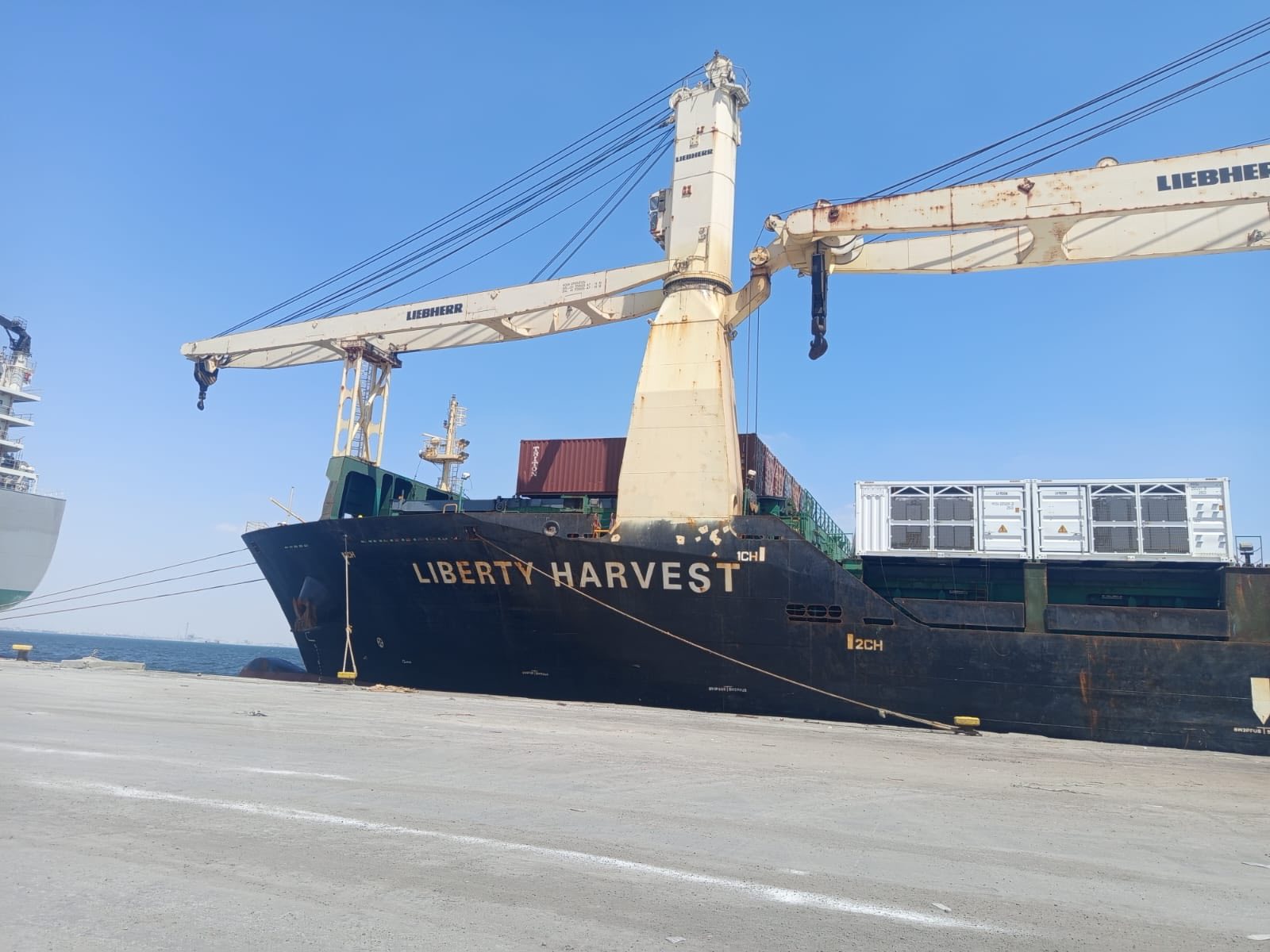 وفي سياق متصل، شهد ميناء الأدبية وصول سفينة البضائع العامة "M.V. LIBERTY HARVEST"، قادمة من الصين محملة بـ 50 وحدة من وحدات تخزين الطاقة لصالح المشروع القومي لإنتاج الطاقة المتجددة في نجع حمادي بمحافظة قنا، وتعد تلك هى أول مرة يتم فيها استقبال وحدات تخزين الطاقة البطاريات بميناء الأدبية.