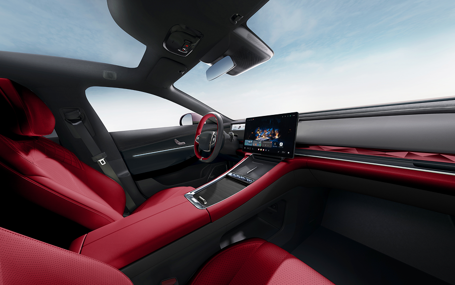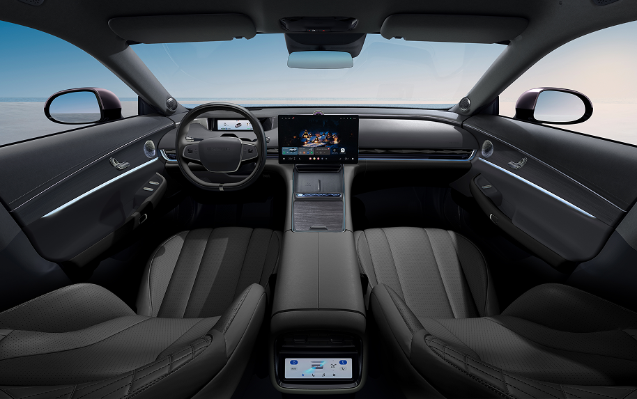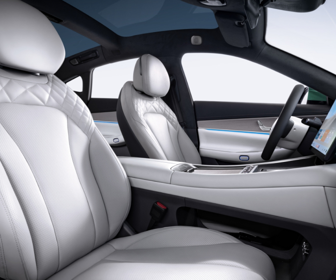 وفي الداخل, تتميز المقصورة بفرش جلدي نابا والعديد من التقنبات والخامات المميزة وتأتي المقاعد بفرش جلدي نابا من 10 طبقات لتوفير الراحة والدعم . كما تسيطر علي المقصورة مواد صديقة للبيئة وفتحة سقف كما تتميز المقصورة بالاتساع مع نظام ترفيهي مميز