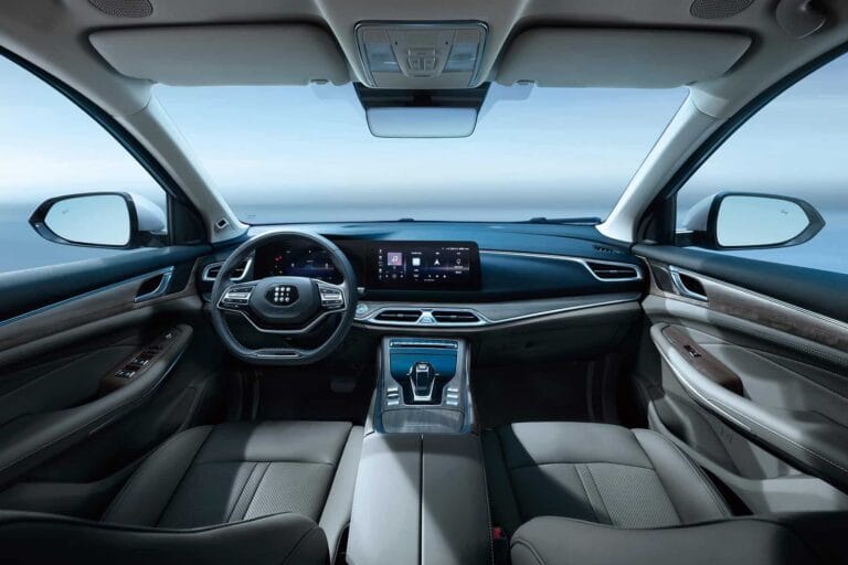 تتميز سيارة E5 PHEV بتصميم داخلي راقي مع مقاعد جلدية ناعمة الملمس وخياطة أنيقة وإضاءة محيطة تخلق جوًا هادئًا وفخمًا.