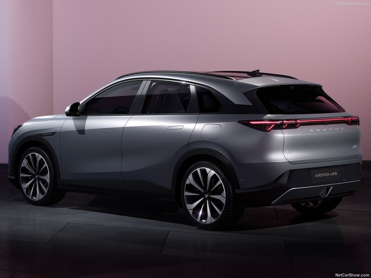 تأتي سيارة αT5 بجنوط سوداء قياس 19 أو 20 بوصة، مدمجة مع فرامل حمراء، مما يضفي عليها طابعًا رياضيًا. تساهم مقابض الأبواب المخفية وجناح السقف في معامل سحب السيارة البالغ 0.245Cd.