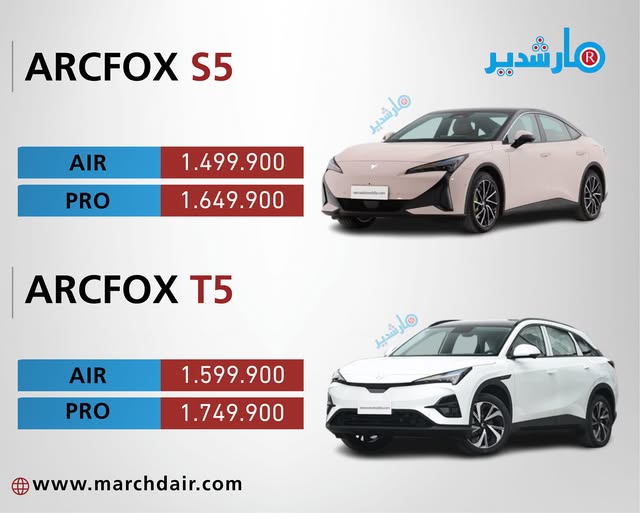 كما قدمت سيارات أركفوكس ألفا T5 بالأسعار التالية :