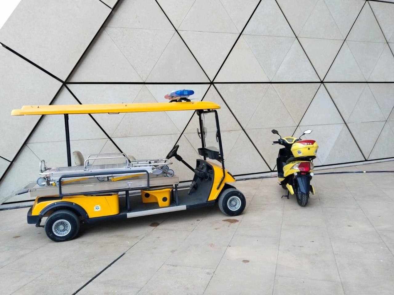 كما تم نشر 8 سيارات إسعاف حديثة ومزودة بمعدات الإنعاش والإسعاف الأولي داخل المتحف. كما تشارك فرق الإنقاذ المتنقلة، وهي فرق مجهزة بأدوات الإنقاذ والإسعاف المتقدم، وتتحرك بمرونة لتغطية جميع المناطق، مع التنسيق المباشر مع غرفة الأزمات المركزية. كما توفر للتأمين عدد من الاسكوترز للتدخل السريع وعربات الجولف.