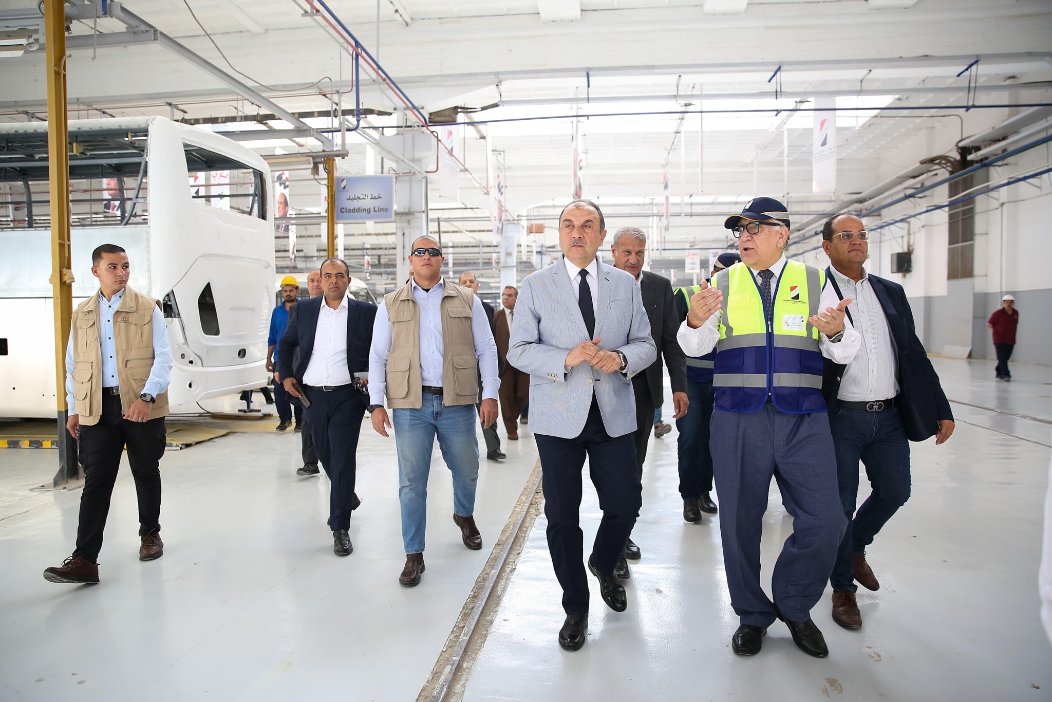 كما تفقد مصنع الأتوبيس، الذي يشهد مرحلة جديدة من التطوير والإنتاج، حيث تابع سير العمل في مختلف الأقسام وخطوط التصنيع والماكينات الحديثة التي تم توريدها مؤخرًا، وأبرز منتجات المصنع وفي مقدمتها أتوبيس "نصر سكاي" السياحي، الذي يمثل باكورة عودة الإنتاج بالشركة منذ الربع الأخير من عام 2024 بعد توقف دام أكثر من 15 عامًا، بطاقة إنتاجية تبلغ 300 أتوبيس سنويًا مستهدف زيادتها، بنسبة مكون محلي وصلت إلى 63%.