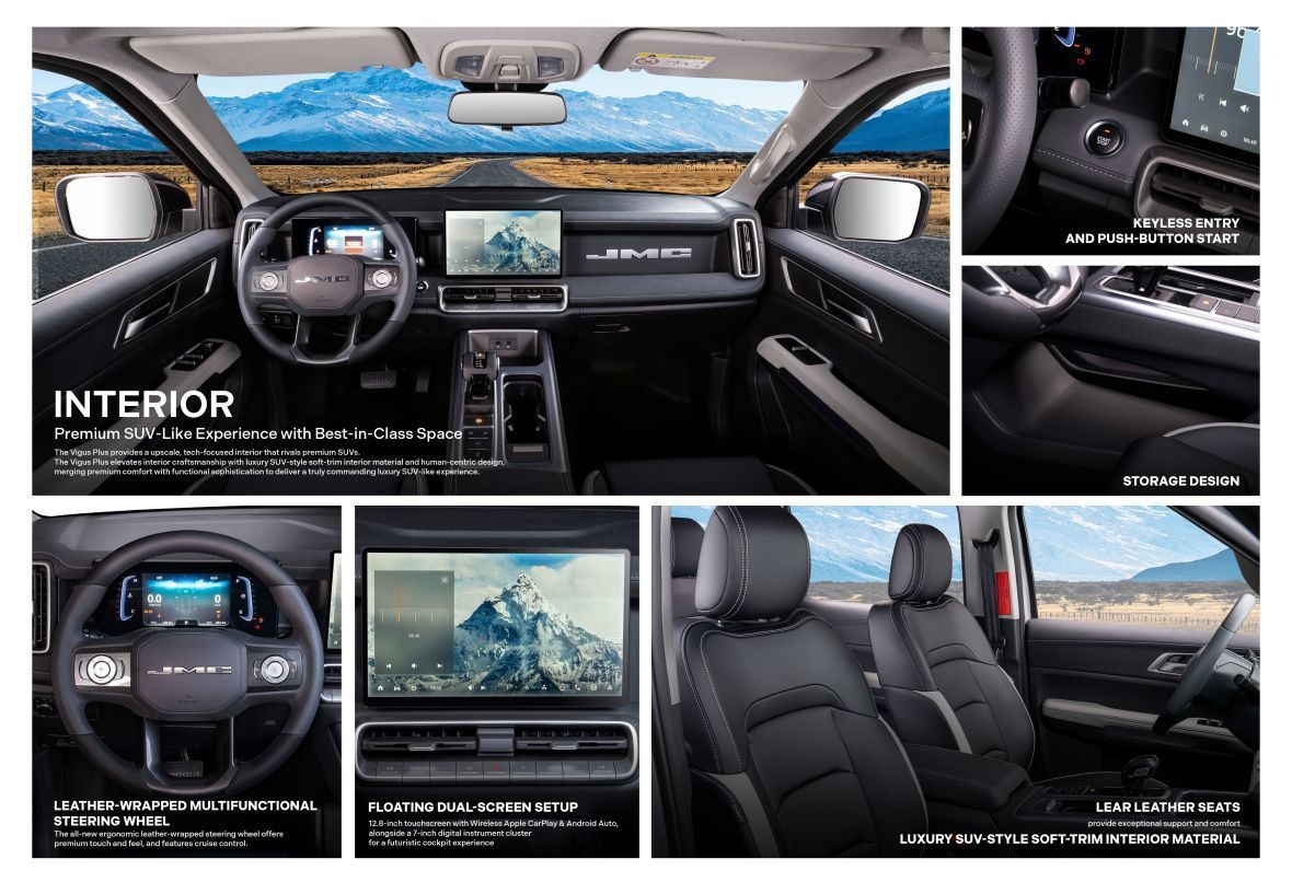 وتقدم JMC فيجاس بطول يبلغ 5335 مم وعرض 1882 مم وارتفاع بواقع 1834 مم مع خلوص أرضي يبلغ 210 مم. وهذه القدرات تساعدها علي أداء وظيفتها علي الطرق الوعرة.
