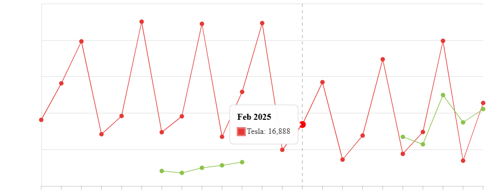 شهدت BYD ارتفاعًا قويًا في تسجيلاتها ليس فقط في الشهر الأخير بل أيضًا على مدار الفترة من يناير حتى نوفمبر 2025 حيث بلغ إجمالي التسجيلات 159869 مركبة بزيادة 276 في المئة مقارنة بنفس الفترة من 2024 بينما سجلت Tesla 203382 مركبة بانخفاض 28 في المئة مما يدل على تضييق الفجوة بين الشركتين رغم أن Tesla لا تزال تتفوّق في الإجمالي السنوي حتى الآن