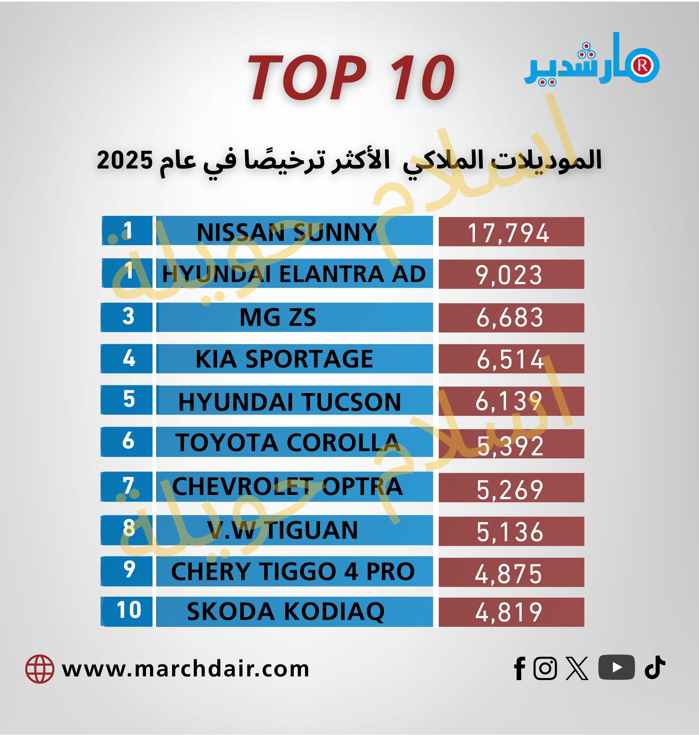 نروح للنقطة التانية.. نشوف ترتيب الموديلات الملاكي الزيرو الاكثر ترخيصا في 2025 "الجدول المرفق"