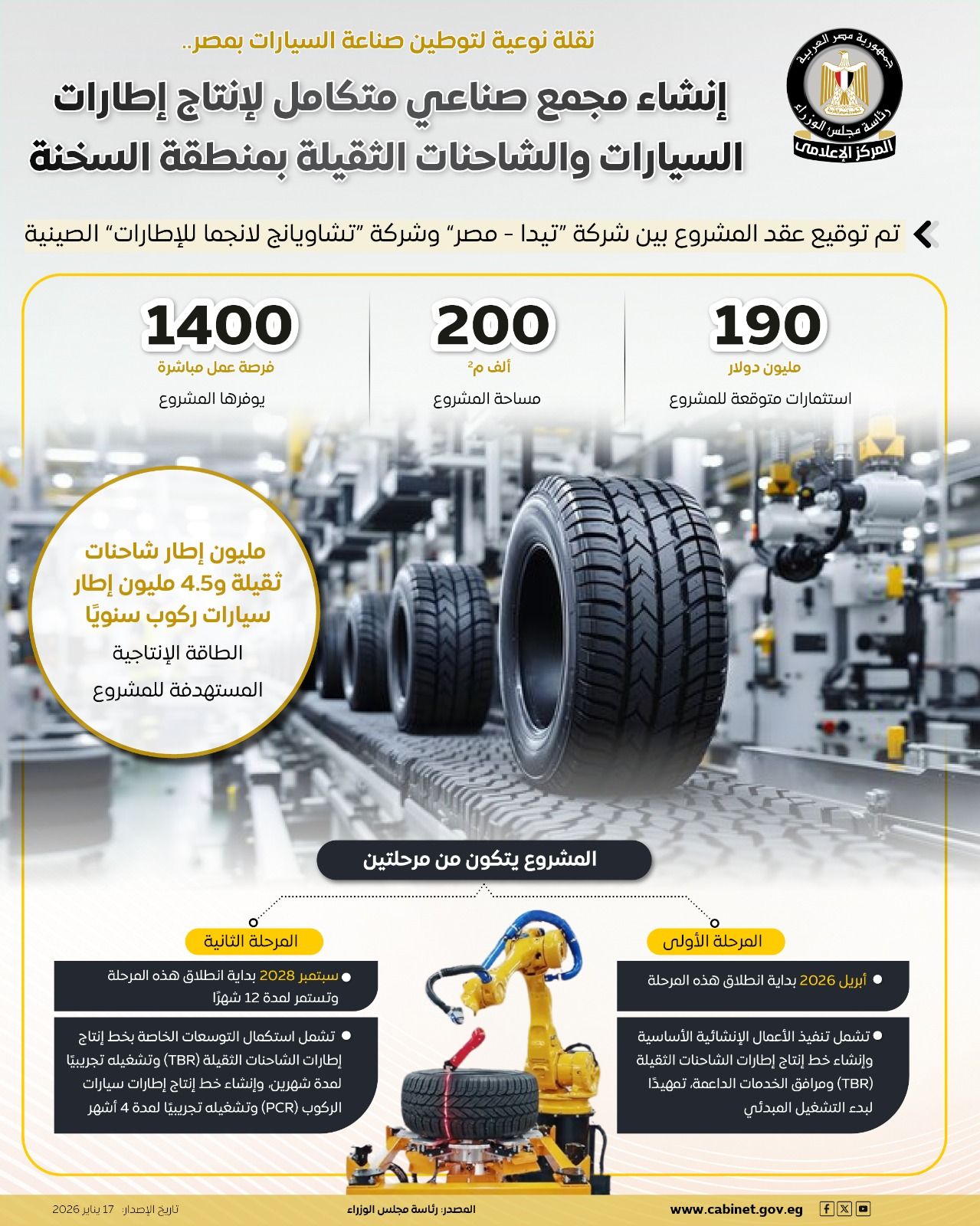 انفوجراف لتفاصيل مشروع المجمع الصناعة للإطارات في العين السخنة