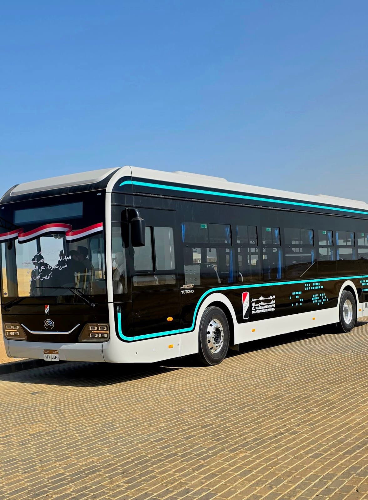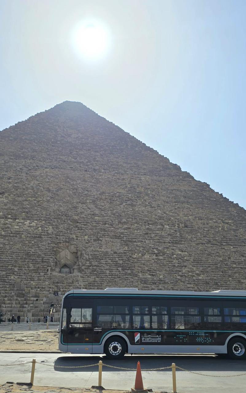 بدء التشغيل التجريبي لأتوبيس نصر EV الكهربائي عند الأهرامات