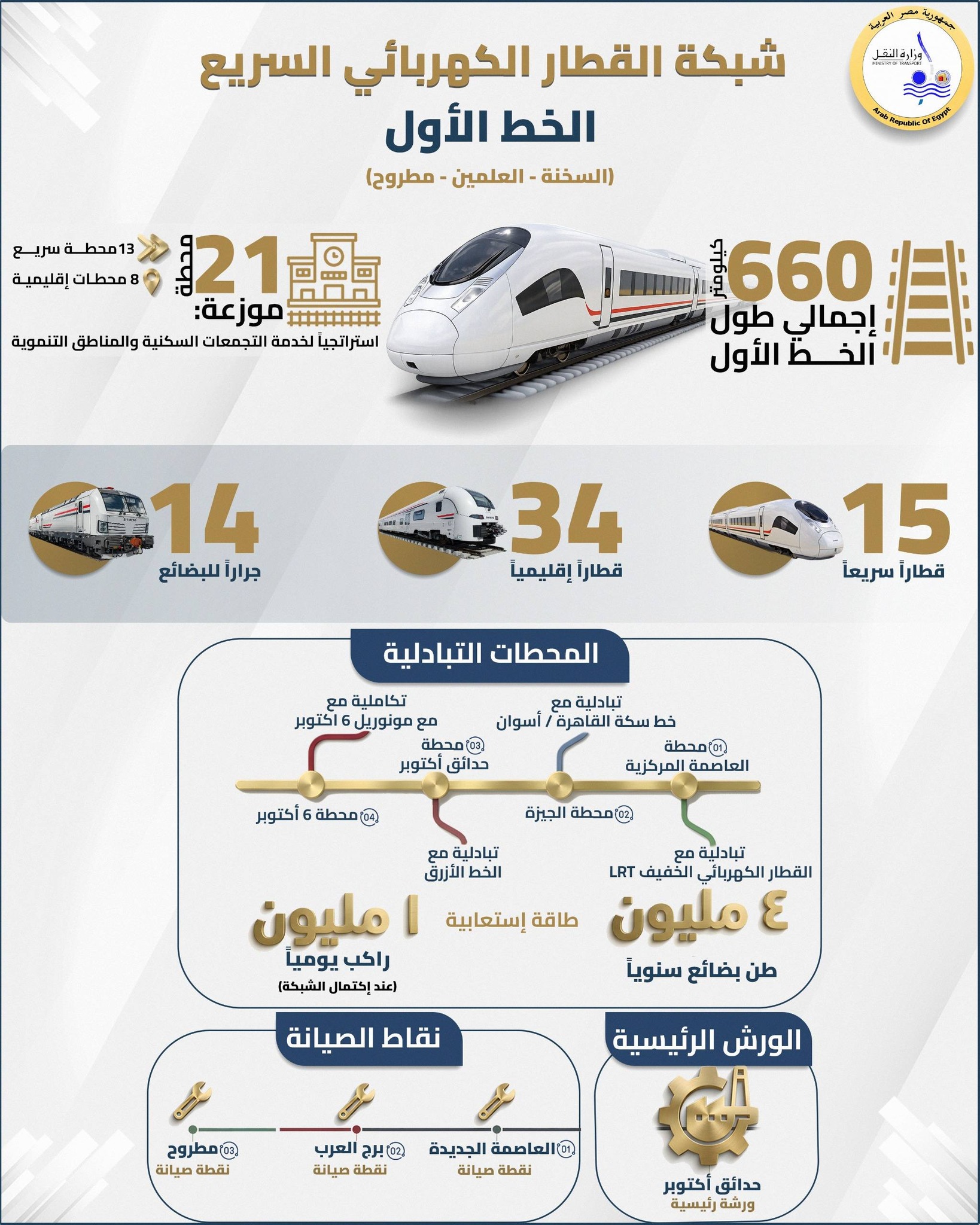 انفوجراف : التفاصيل الكاملة لمشروع القطار الكهربائي السريع