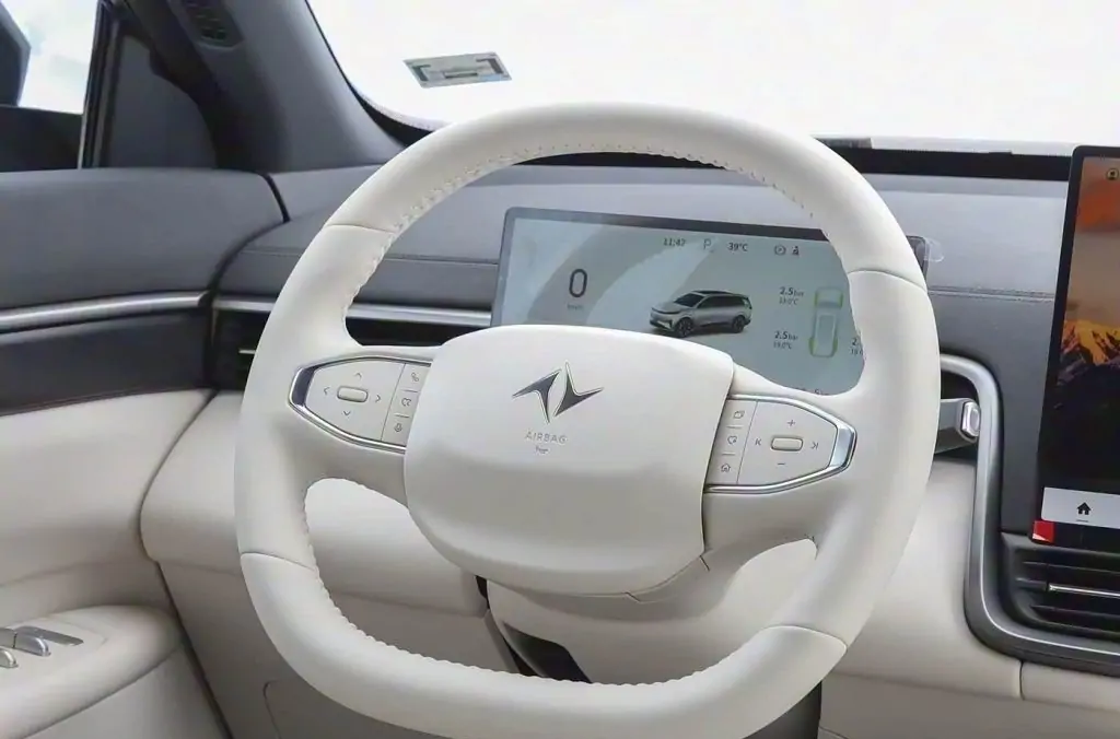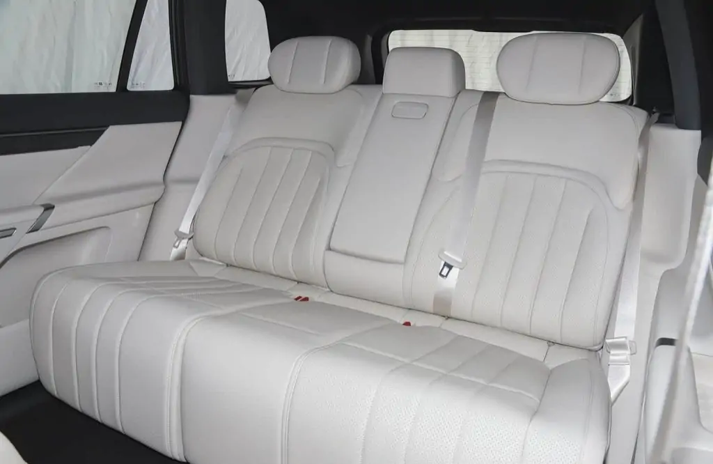 كما تتميز المقصورة الداخلية بتصميم حديث مع سهولة كبيرة في الاستخدام , مع توفر 3 ألوان داخلية رئيسية تشمل :  الأسود الكوني، والأبيض الحجري، والبني الفاتح. أما الكونسول الوسطي للسيارة, فيأتي بشاشة رئيسية مقاس 15.6 بوصة وشاشة عدادات رقمية مقاس 10.25 بوصة.  وفي الخلف، توجد شاشة ترفيهية بقياس 15.6 بوصة، قابلة للتحديث إلى مقاس 21.4 بوصة، كما يتوفر لها نظام صوت محيطي من 17 مكبر صوت، وثلاجة مدمجة لتبريد المشروبات أثناء الرحلات الطويلة.