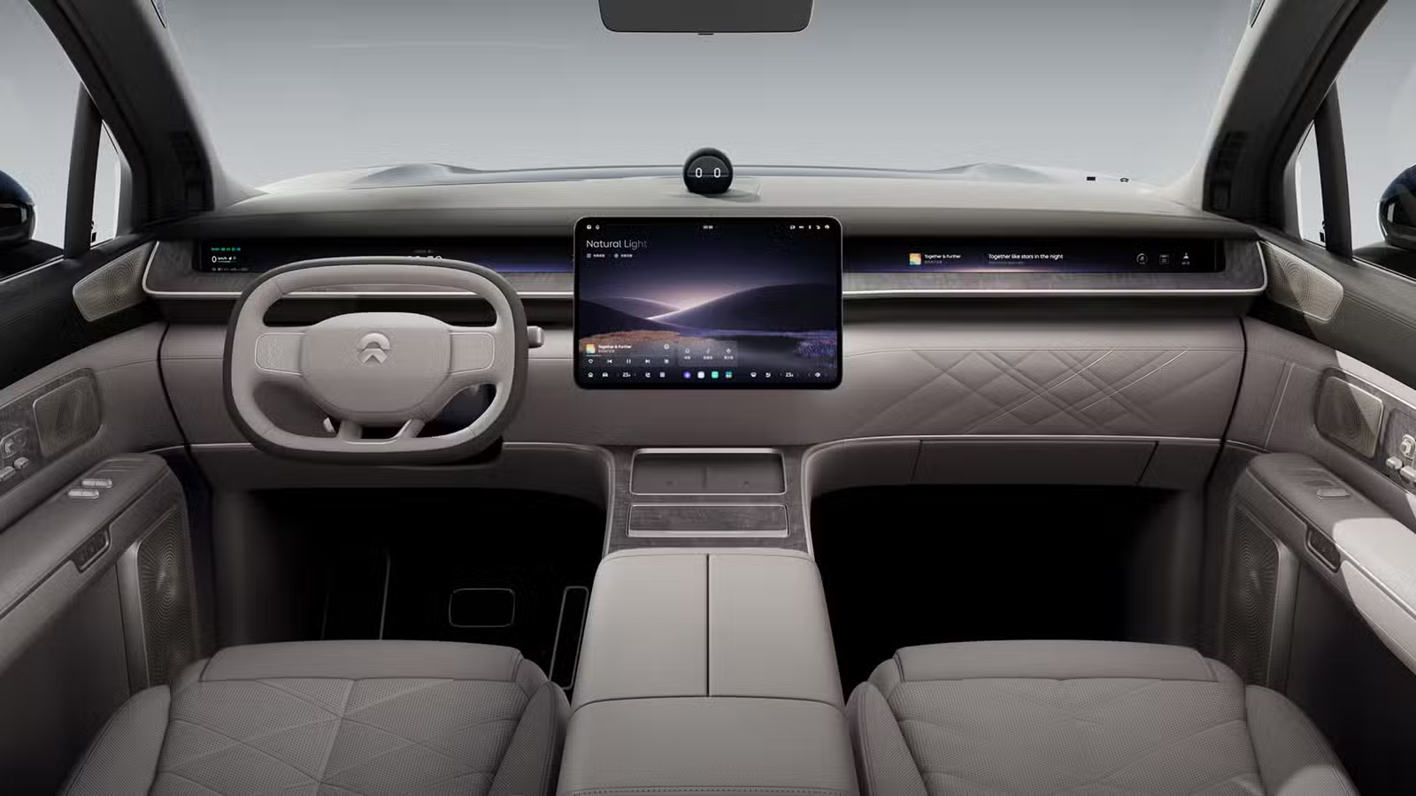 الشاشات: شاشة AMOLED مركزية 15.6 بوصة، وشاشة عرض سينمائية بعرض الطبلون بالكامل (48 بوصة)، بالإضافة لشاشات خلفية 14.5 بوصة.