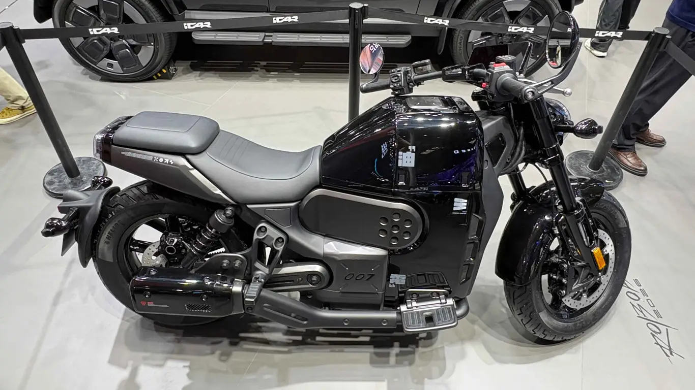 كما عرضت دراجة نارية كهربائية من طراز iCAR بتصميم بسيط وبطارية مدمجة. تتميز بمكابح قرصية وقاعدة عجلات قصيرة وإطار خلفي عريض، مما يوحي بأنها مناسبة للقيادة في المدن.
