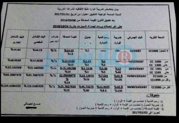 بالمستندات: "الجمارك والضرائب" الرسمية بعد تخفيض "الشراكة الأوروبية"