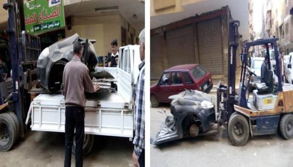 بالصور: حملة فى الحرفيين لرفع أنصاف السيارات من أمام الورش